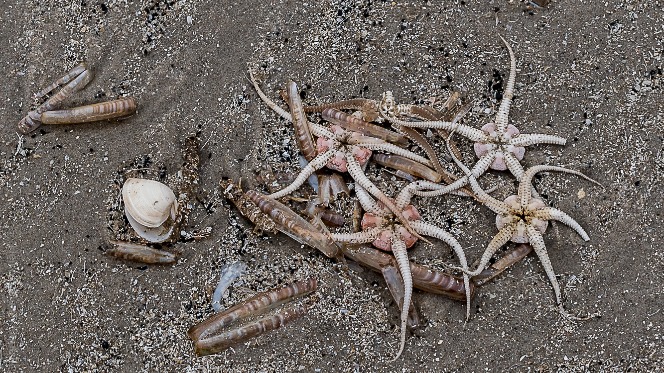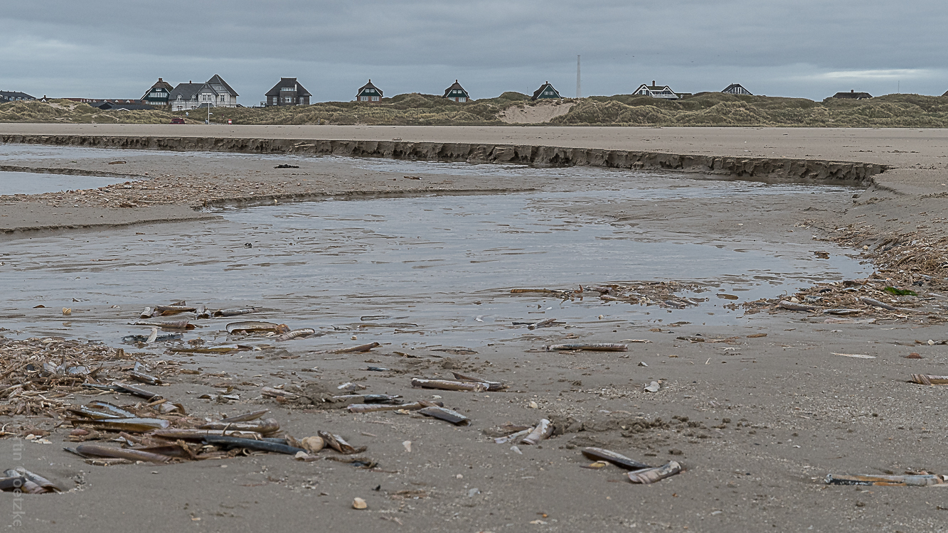 Der Vormittag vertrödelt sich daher mit allerlei keine Ahnung-mehr-mit-was. Erst um die Mittagszeit kriege ich den Dreh und wir fahren an den Strand von Fanø Bad. Obwohl der Wind kräftig ist, hat die Flut dort nicht so viel Müll angespült, wie am Südende. Viele Vögel sind am Strand. Ich habe aber nicht die richtige Kamera dabei.