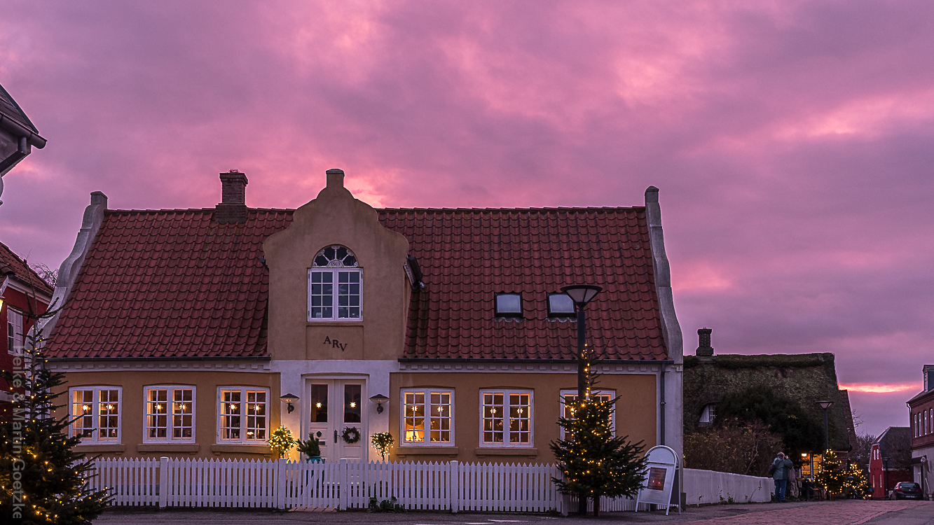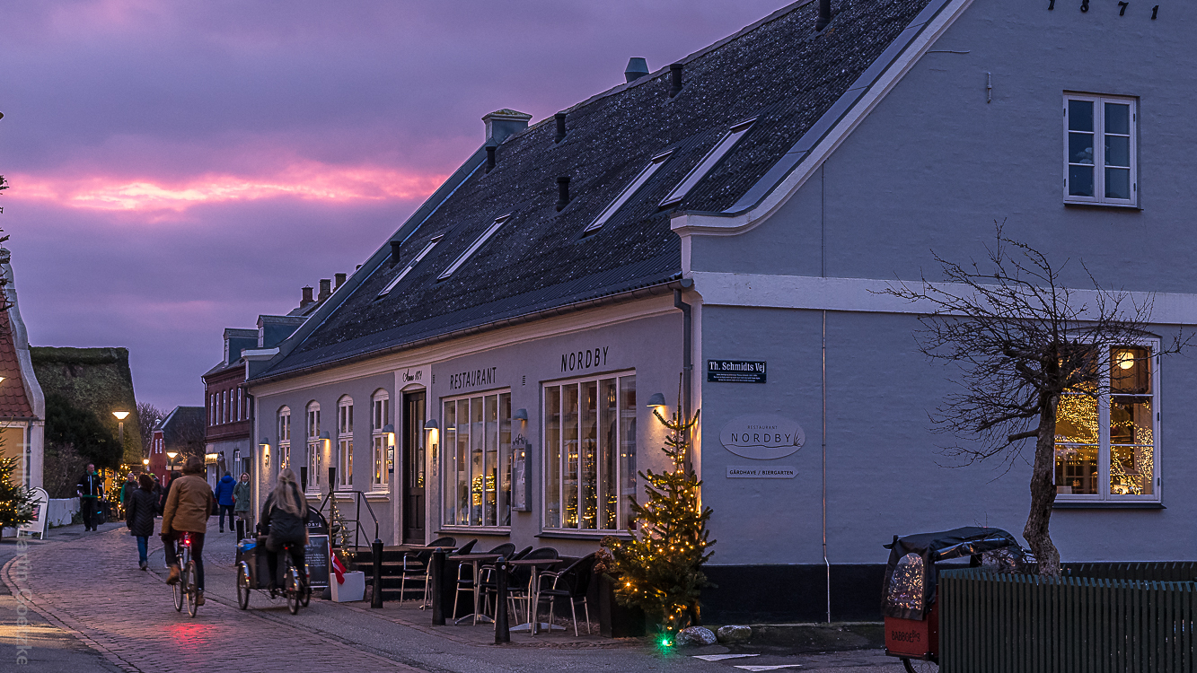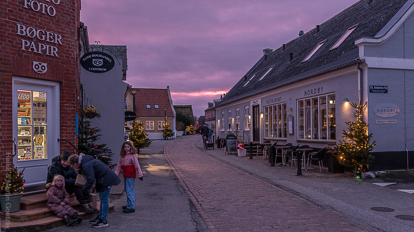 Nach einer Stippvisite im Kerzengeschäft, wir erbeuten aber „nur“ Weihnachtskarten, fahren wir nach Nordby an den Hafen und laufen zurück durch den Ort zur Adventsausstellung.