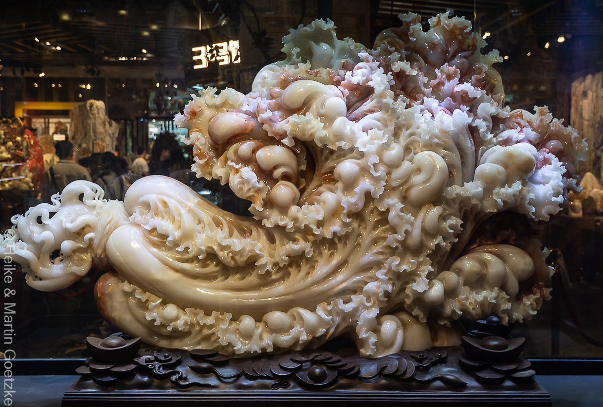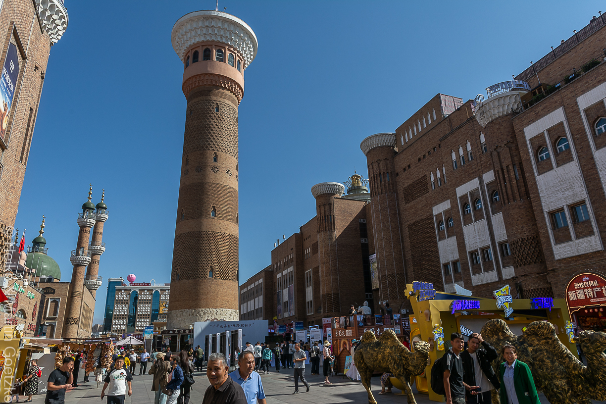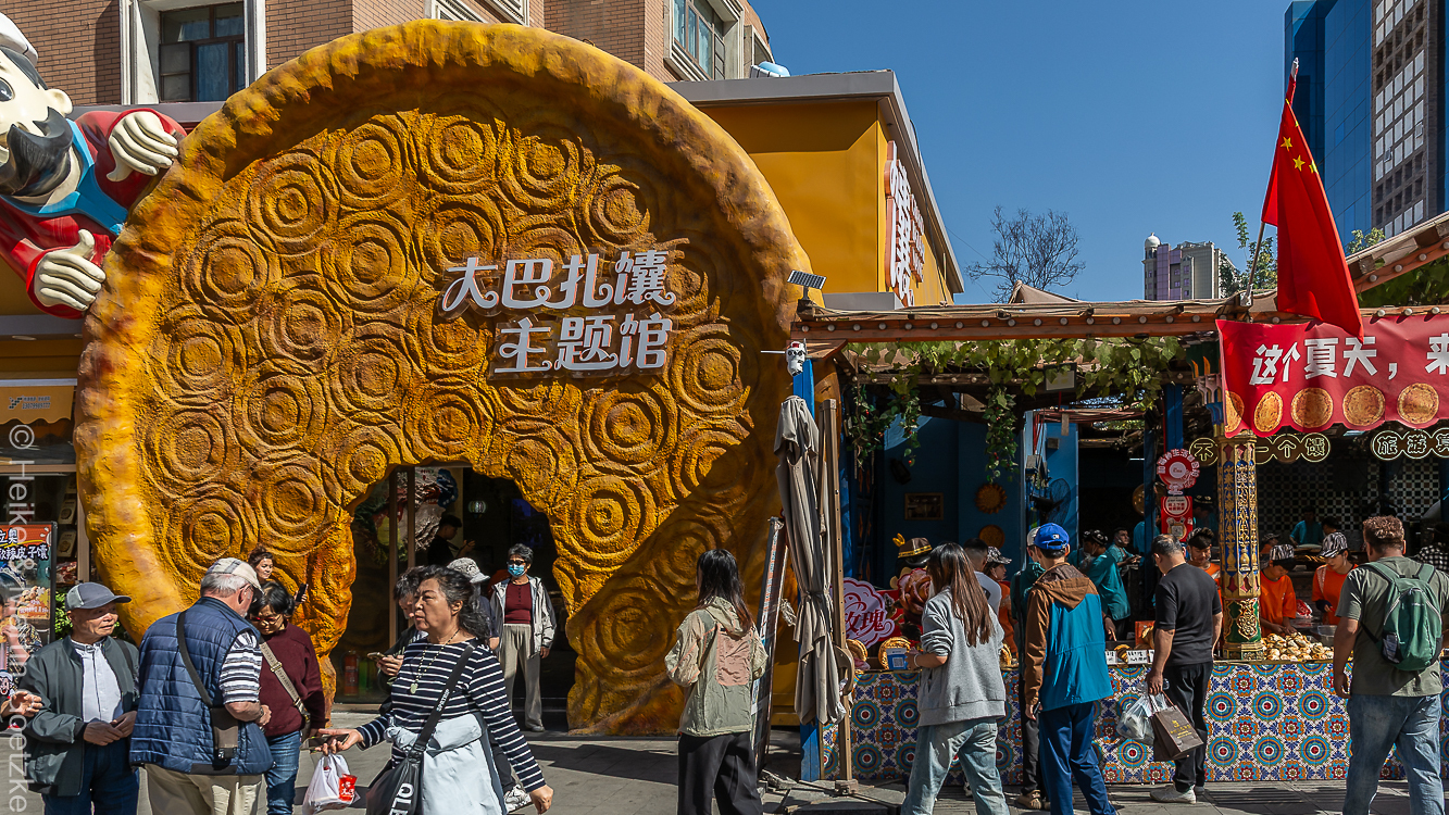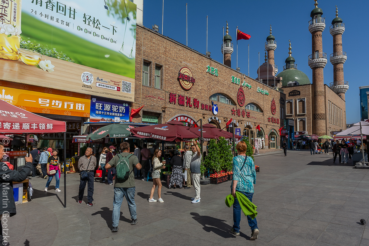 Urumqi ist eine relativ junge rechtwinklige Retortenstadt. Wir werden offensichtlich zu den Highlights gebracht, die von Inlandstouristen präferiert werden oder die der chin. Staat zeigen will. Eindeutig lässt sich das auch mit Hilfe des Guides nicht klären. Ich habe nicht die geringste Lust im Gewusel des internationalen Bazars irgendetwas für zu Hause einzukaufen.