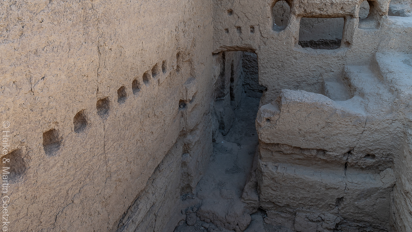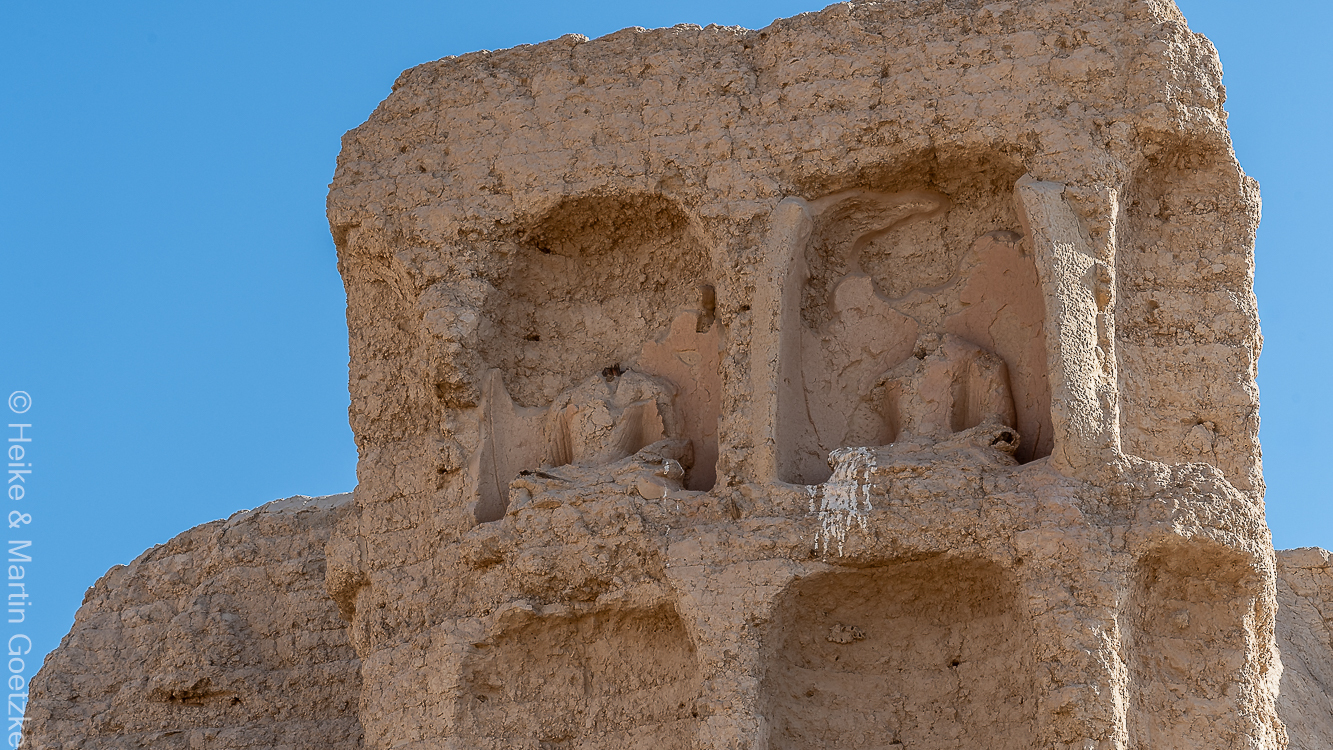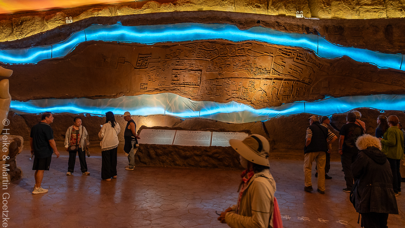 Die Karez, die uralten Bewässerungsanlagen, machen dann den Tag teuer. Die engen, aber zu hunderten erbauten Bewässerungskanäle liegen unterirdisch und können nicht besichtigt werden. Nur abschnittweise geöffnete Kanäle im Ausstellungsgebäude stehen für einen Eindruck zur Verfügung. Und in diesem Haus, auf hartem gefliesten Boden, knallt meine Kamera auf die Fliesen. Der Schultergurt hat sich gelöst. Error. Nichts geht mehr. Das Objektiv ist ohne Schaden, aber die Kamera knippst nur noch unmotiviert vor sich hin und fokussiert nicht. Daher gibt es hier keine Bilder von den Bewässerungsanlagen und der Ausstellung.