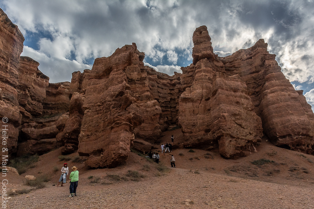 Heute sind wir dennoch irgendwie zu früh gestartet. Das Frühstück war nicht wirklich gut, Kaffee gab es auch nicht, selbst Instantkaffee nicht . . . Ich bin heute nicht wirklich gut drauf. Die Koffer kommen gleich in den Bus, mit dem wir heute Nachmittag nach Almaty weiterfahren. Erwähnenswert: Im Gästehaus hat auch eine andere europ. Reisegruppe übernachtet, offensichtlich eine Wandergruppe, die von hier aus Exkursionen durchführt.