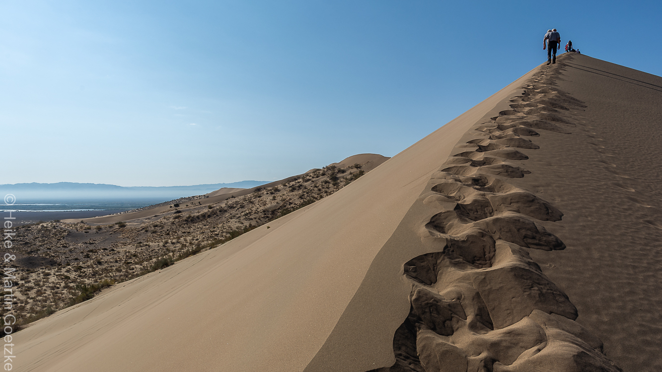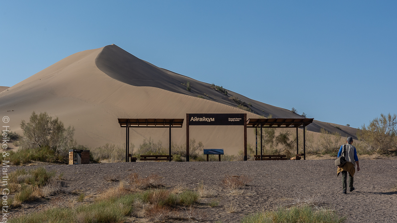 Nach Wetterbericht soll es heute besser werden, als es gestern war. Für die singenden Dünen ist das bestimmt vorteilhaft. Wir fahren wieder mit den Allradfahrzeugen von gestern in den Altyn-Emel-Nationalpark. Start 07:45 Uhr. Erwähnenswert ist der Findungsprozess Wer-fährt-heute-in-welchem-Auto-mit. Wie die kleinen Kinder, „hier fahre ich nicht mit“, „hier ist zu wenig Platz“ . . . . Aber irgendwann sitzen alle drin und es geht los.