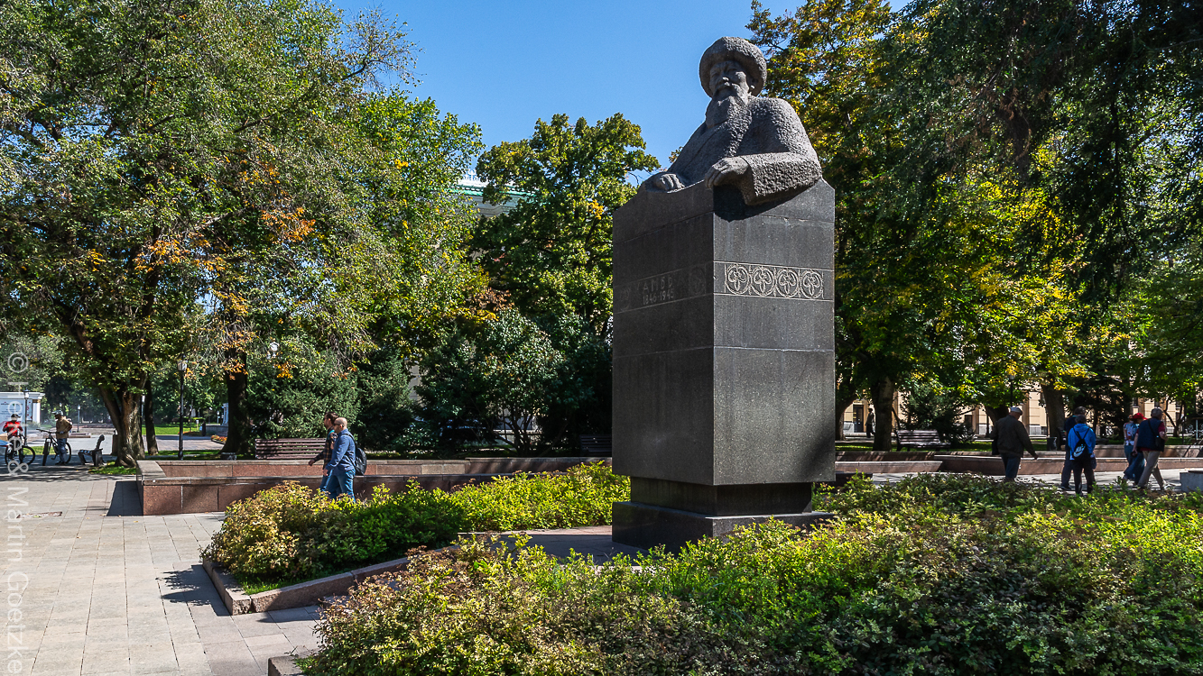 Hier in Kasachstan, aber auch in Xinyjiang und Kirgistan scheint alles recht neu zu sein, gefühltes Durchschnittsalter 50 Jahre. Viel aus der russischen Ära (in den beiden K Ländern). Der Stadtrundgang ist, wie Stadtrundgänge sind. Denkmal für oder gegen diesen oder jenen hier und dort auch noch eines, wichtiges Theater drüben und hüben ein sehenswertes Gebäude. Hängen bleibt, die Stadt ist eine moderne Stadt und braucht den Vergleich mit Städten in Europa nicht scheuen.