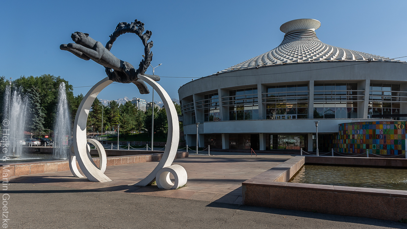 Hier in Kasachstan, aber auch in Xinyjiang und Kirgistan scheint alles recht neu zu sein, gefühltes Durchschnittsalter 50 Jahre. Viel aus der russischen Ära (in den beiden K Ländern). Der Stadtrundgang ist, wie Stadtrundgänge sind. Denkmal für oder gegen diesen oder jenen hier und dort auch noch eines, wichtiges Theater drüben und hüben ein sehenswertes Gebäude. Hängen bleibt, die Stadt ist eine moderne Stadt und braucht den Vergleich mit Städten in Europa nicht scheuen.