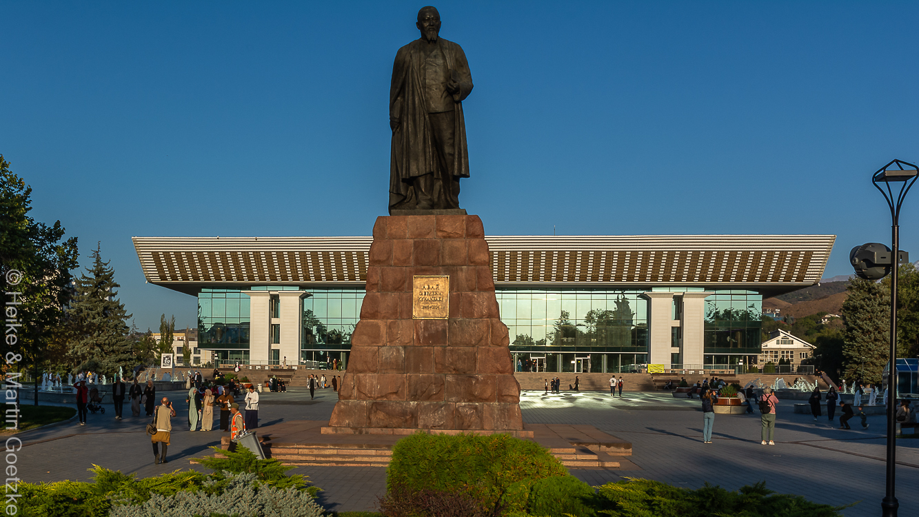 Hier in Kasachstan, aber auch in Xinyjiang und Kirgistan scheint alles recht neu zu sein, gefühltes Durchschnittsalter 50 Jahre. Viel aus der russischen Ära (in den beiden K Ländern). Der Stadtrundgang ist, wie Stadtrundgänge sind. Denkmal für oder gegen diesen oder jenen hier und dort auch noch eines, wichtiges Theater drüben und hüben ein sehenswertes Gebäude. Hängen bleibt, die Stadt ist eine moderne Stadt und braucht den Vergleich mit Städten in Europa nicht scheuen.