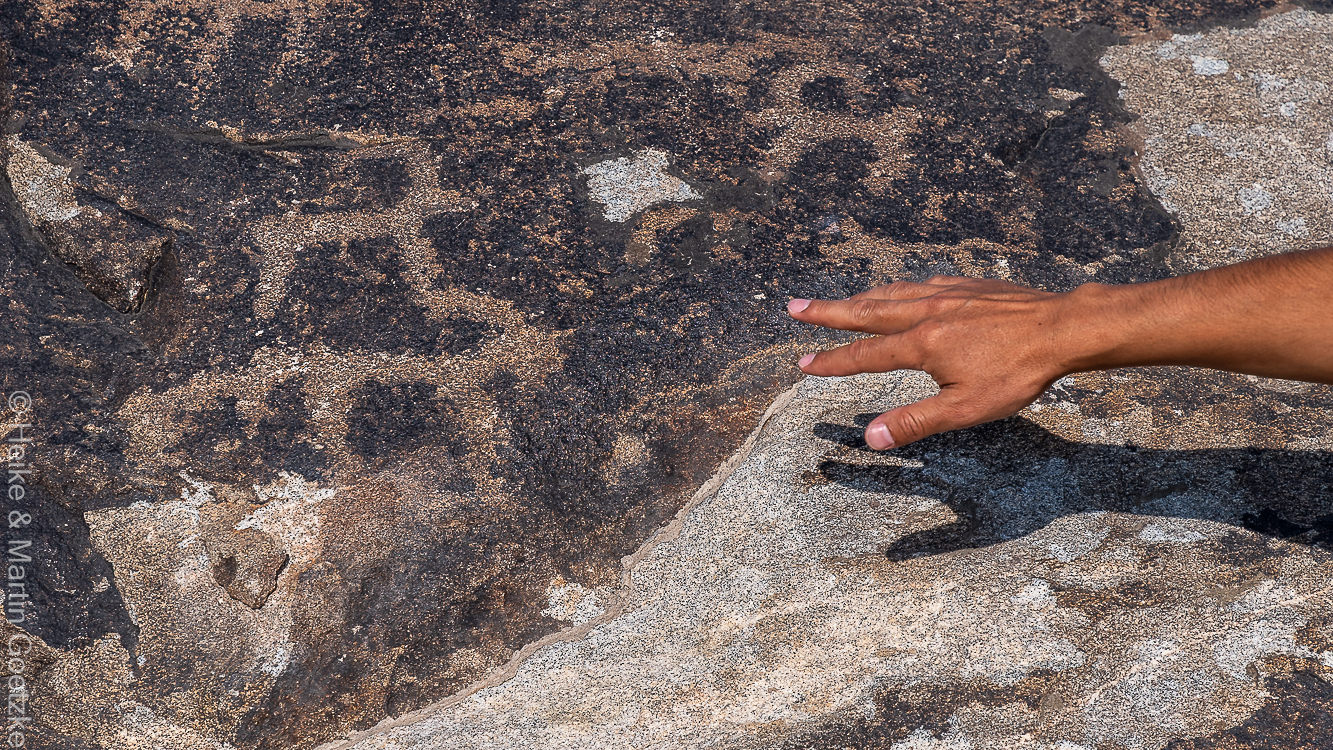 Irgendwie machen die Felszeichnungen nicht den Eindruck als wären sie prähistorisch oder aus den ersten fünf Jahrhunderten AC. Irgendwie sehen sie zu gut aus für ihr Alter, irgendwie nachgemeißelt. Angeblich ist das aber natürlich nicht der Fall.