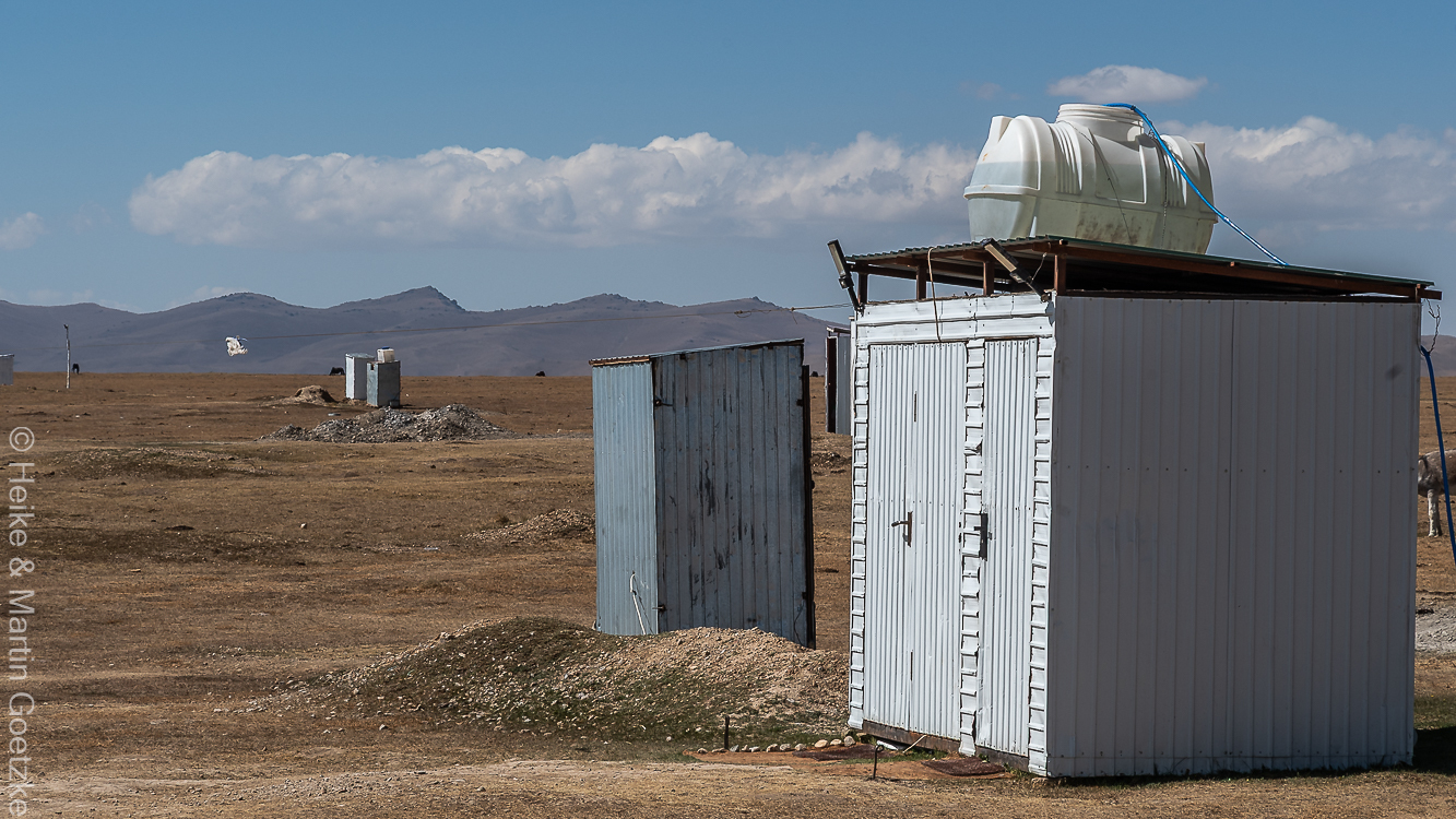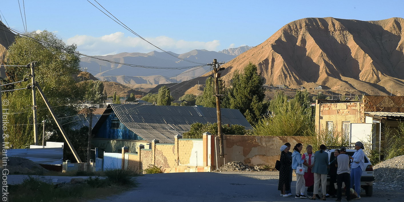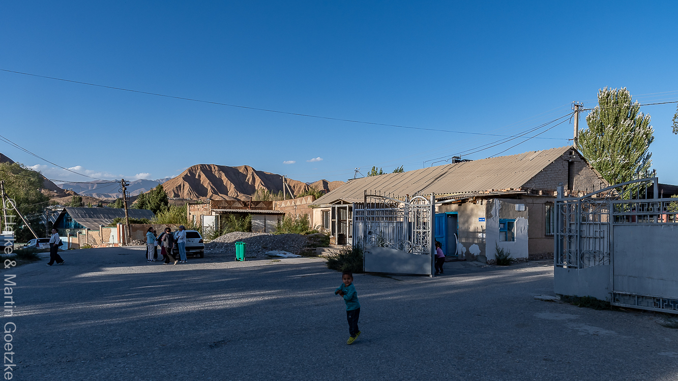 Vom See aus fahren wir gut 3 ½ Stunden bis nach Naryn. Dort geht’s erst einmal zum Hotel . . .