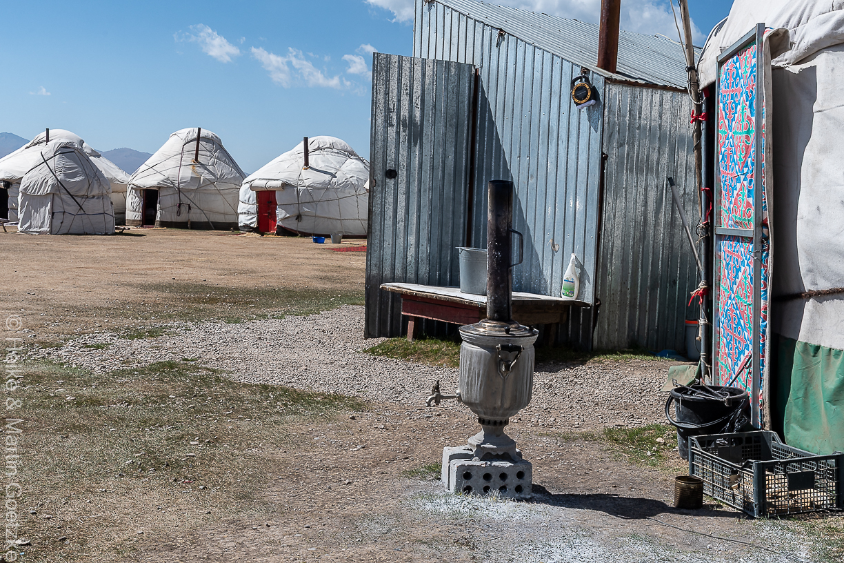 Das Mittagessen nehmen wir nicht in einer Jurte zu uns, sondern in einer Blechbaracke in der es dann des Ofens viel zu warm ist.