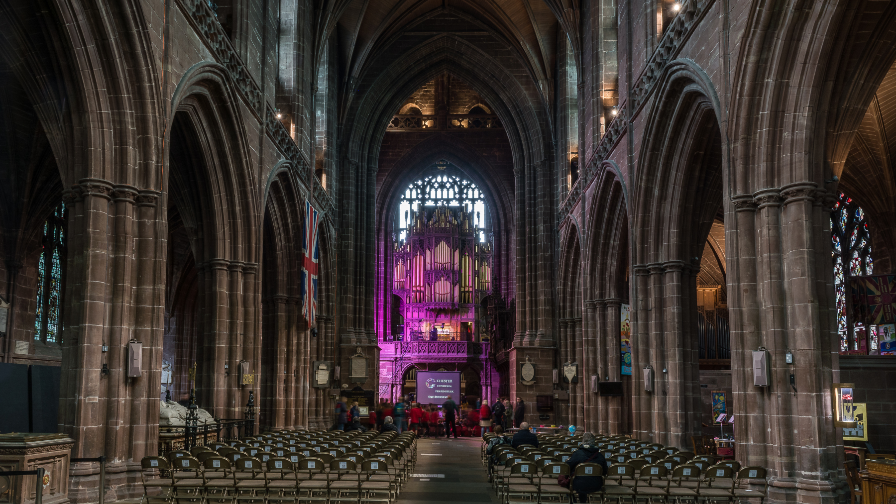 Wir schauen uns die Kathedrale von Chester an. Bemerkenswert an dieser Kirche ist, dass sie lebt. Nicht nur weil während unseres Aufenthalts einer großen Gruppe Schulkindern die Orgel erklärt wird. Sie hat viele Spuren von aktiver Gemeindearbeit unterschiedlicher Altersgruppen. Die Kirche ist nicht nur Denkmal aber ansonsten nicht sonderlich sehens- oder erlebenswert.